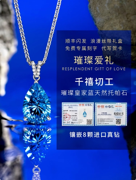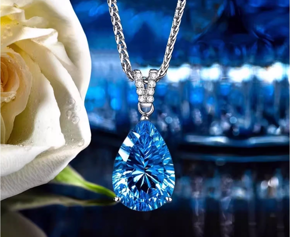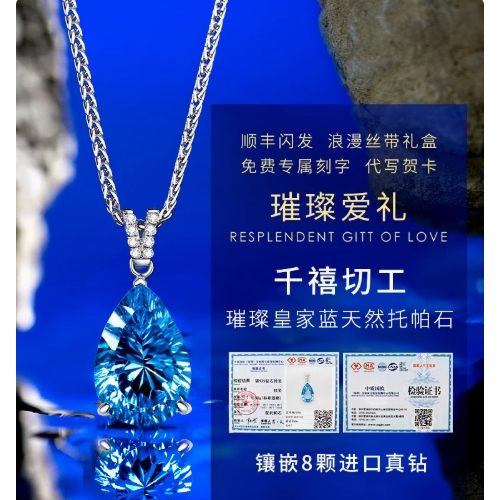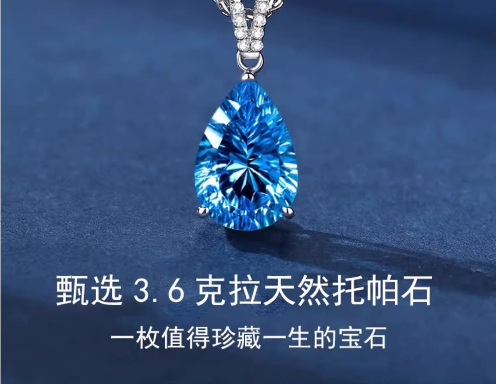海洋之心钻石项链女天然宝石托帕石