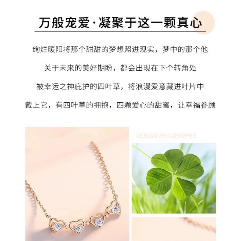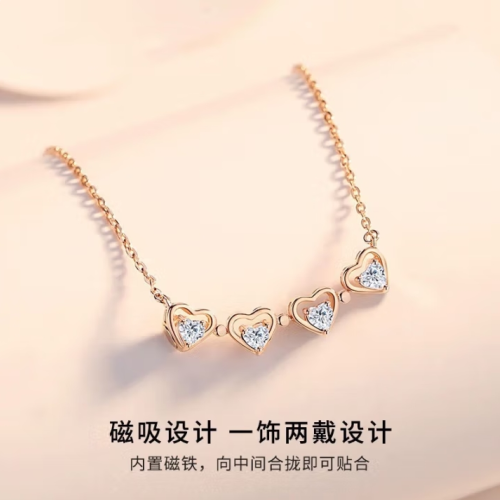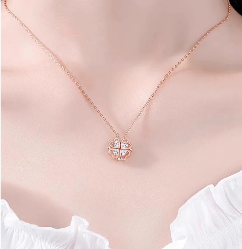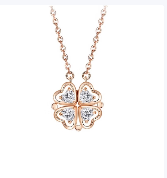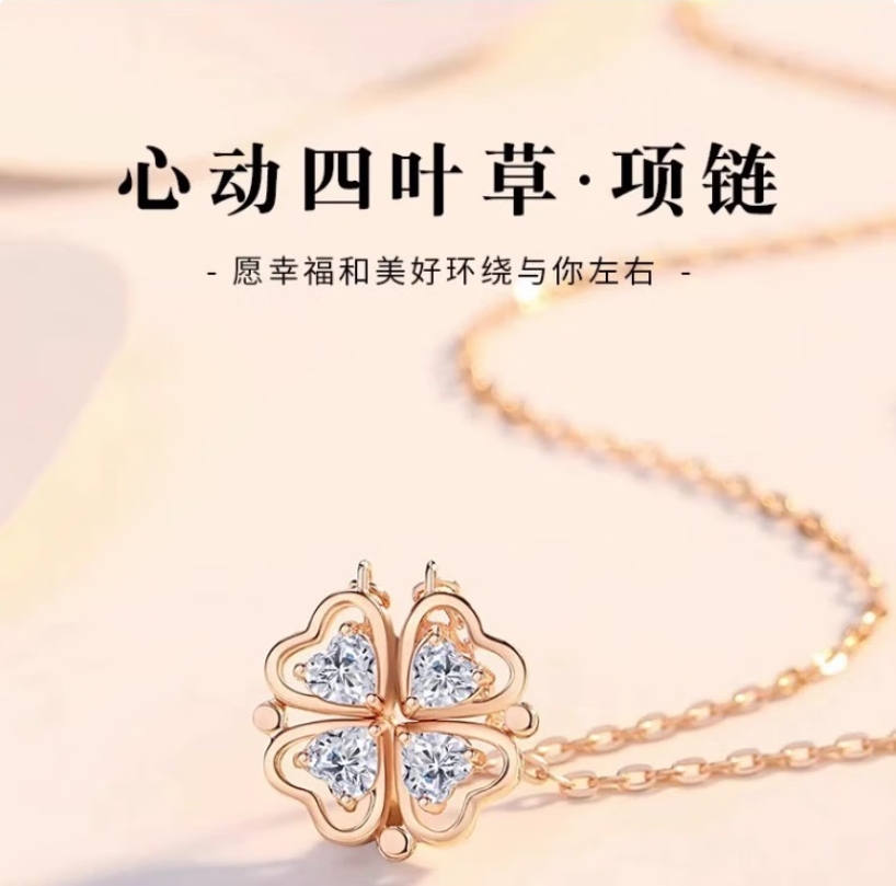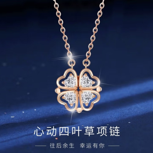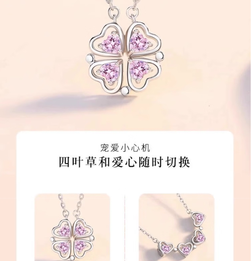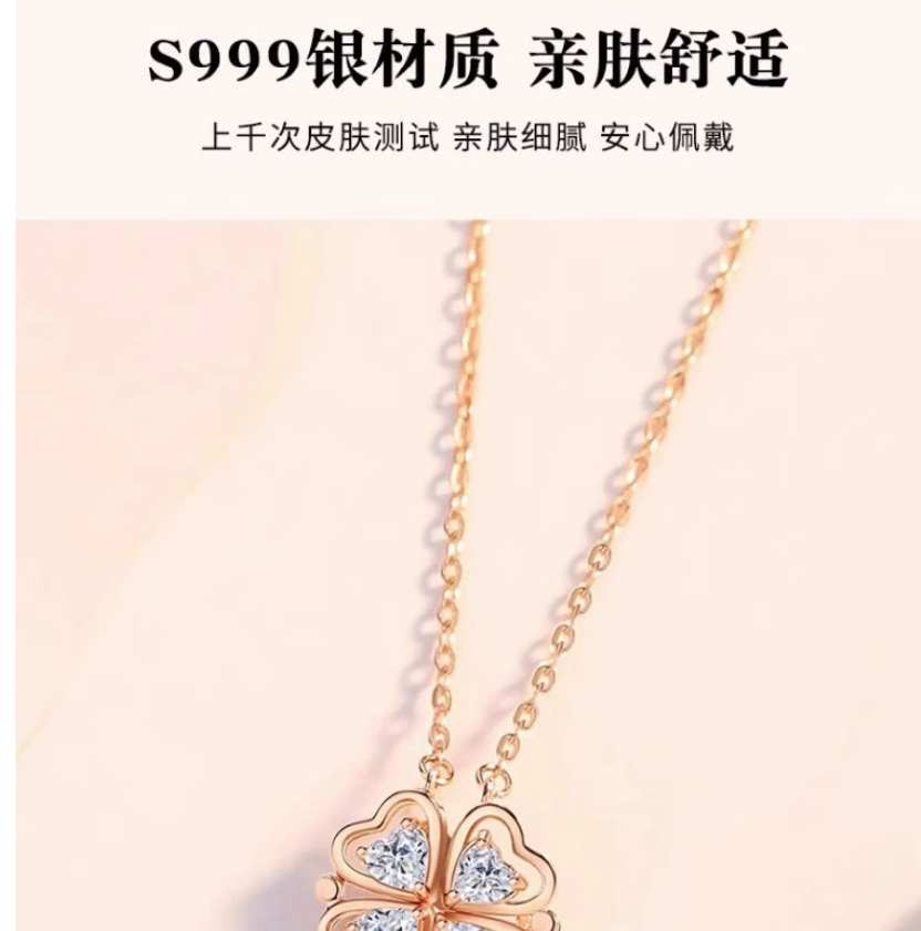 泰罗尼S999银心动四叶草项链磁吸锁骨链小众设计感项饰生日礼物送女友 白金色(白色锆石)