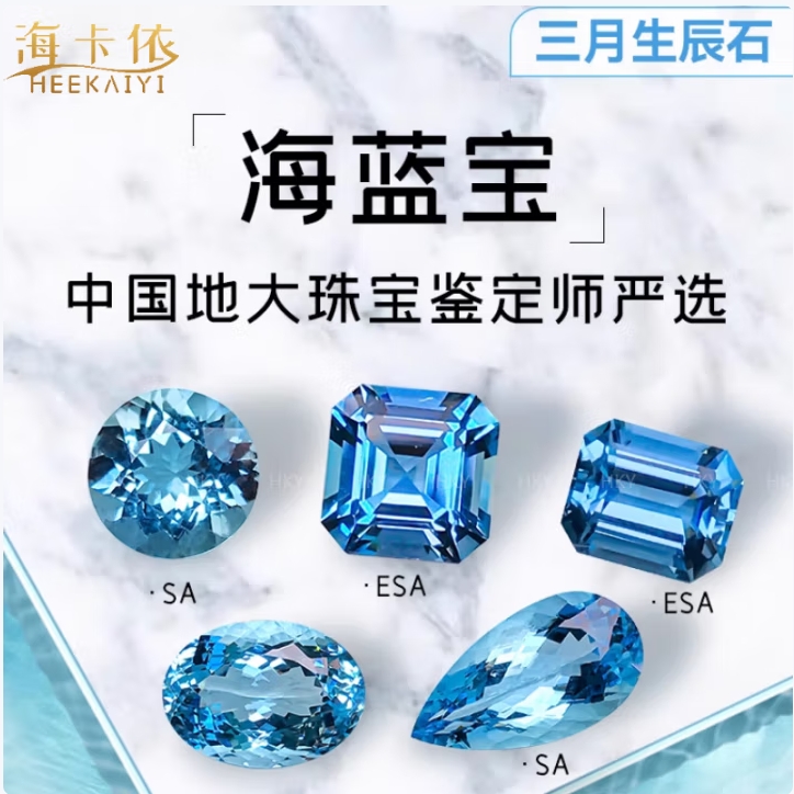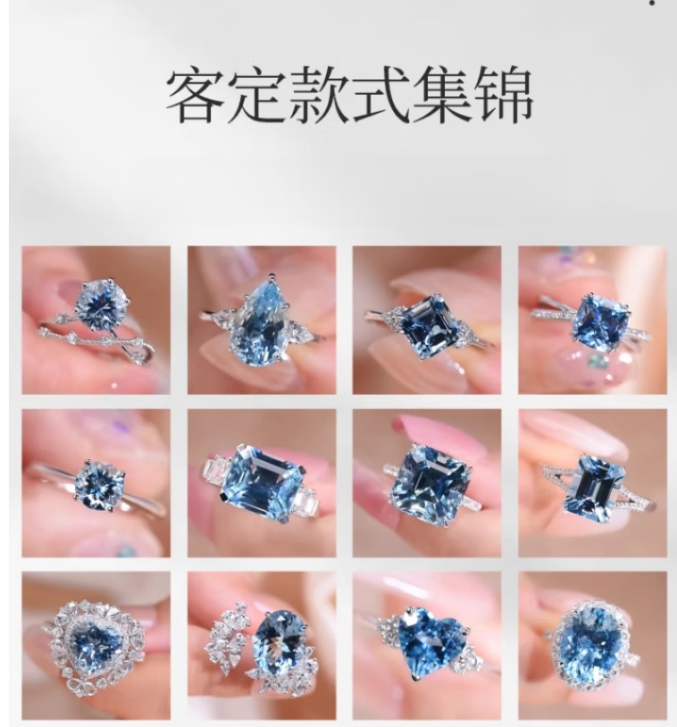 海卡依 HEEKAIYI圣玛利亚海蓝宝项链戒指手链巴西海蓝宝吊坠珠宝首饰18k金定制 定金【海蓝宝石戒指定制】