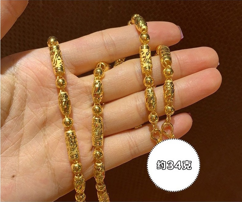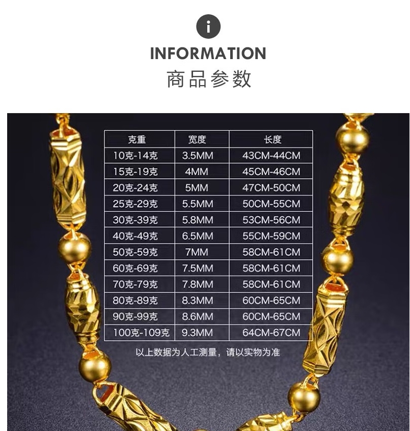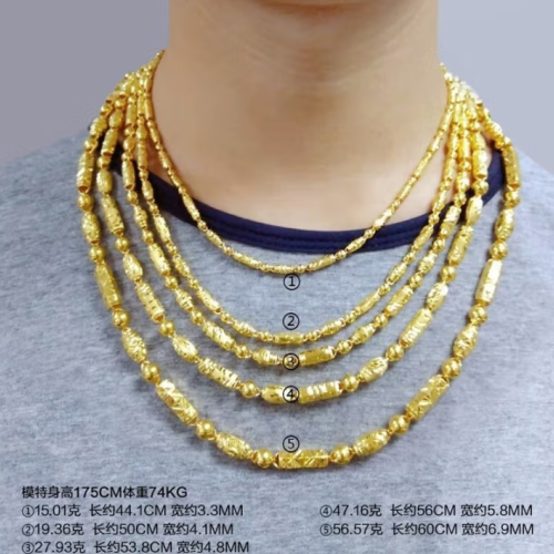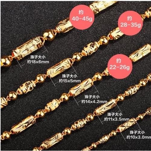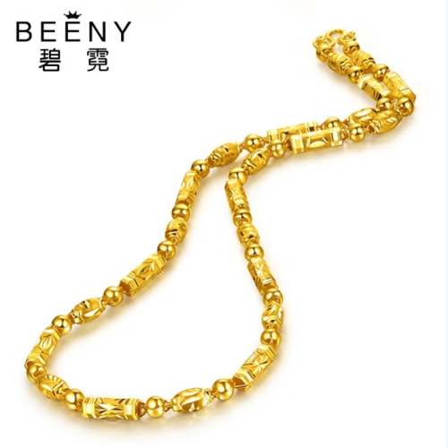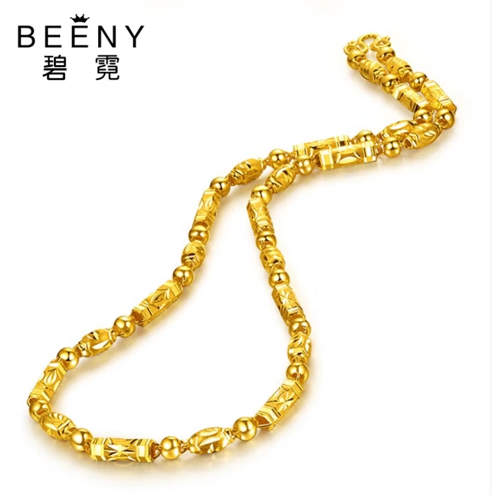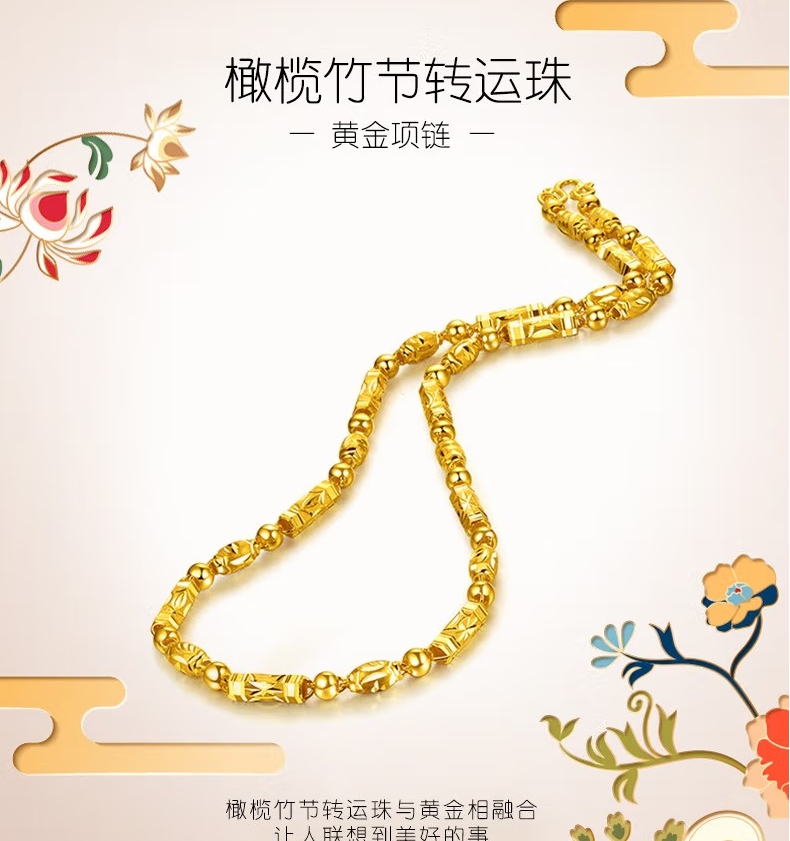 碧霓999.9足金男士项链 黄金项链男女款车花橄榄竹节转运珠链子三合一 款1:金重18.87克 长50cm推荐
