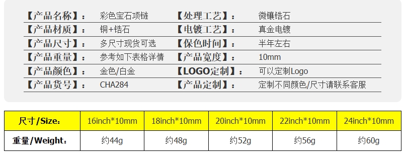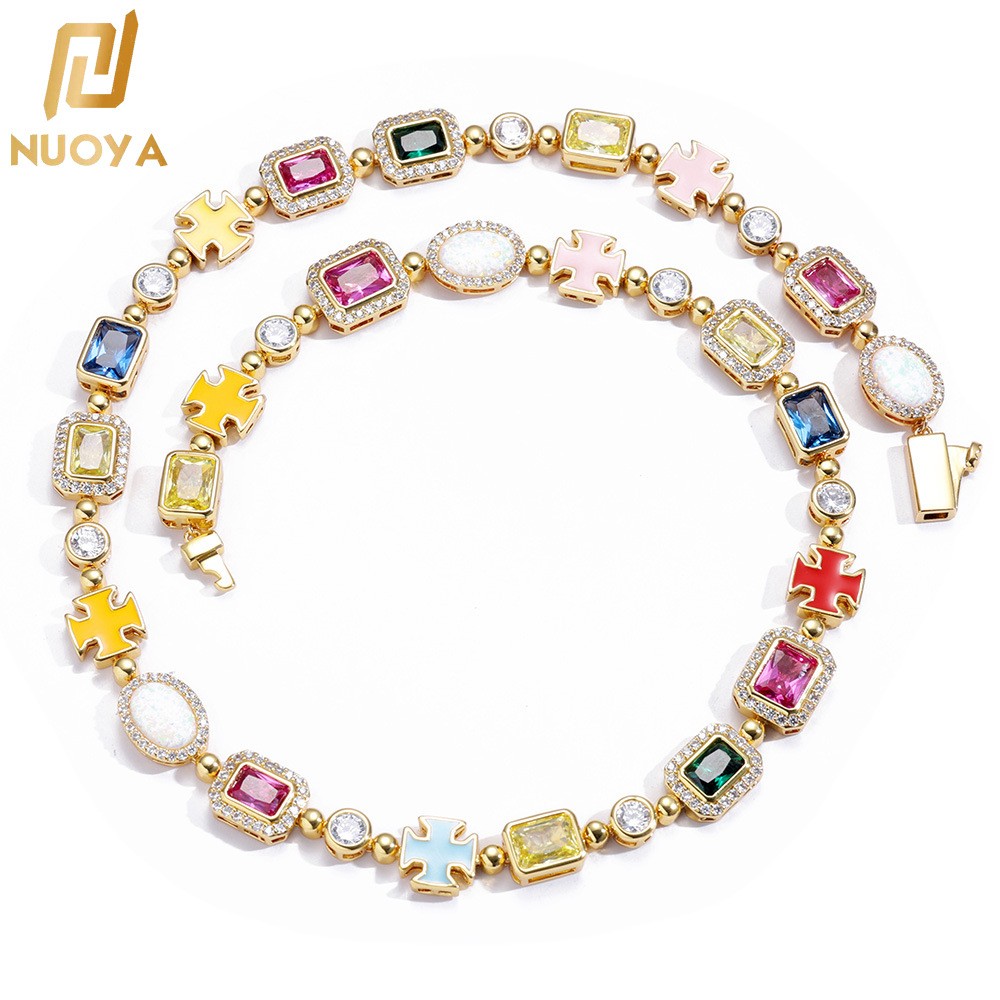欧美跨境嘻哈彩色宝石女士珠宝项链饰品高级感锆石男士项链