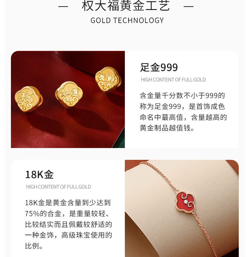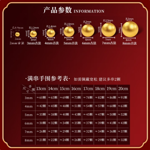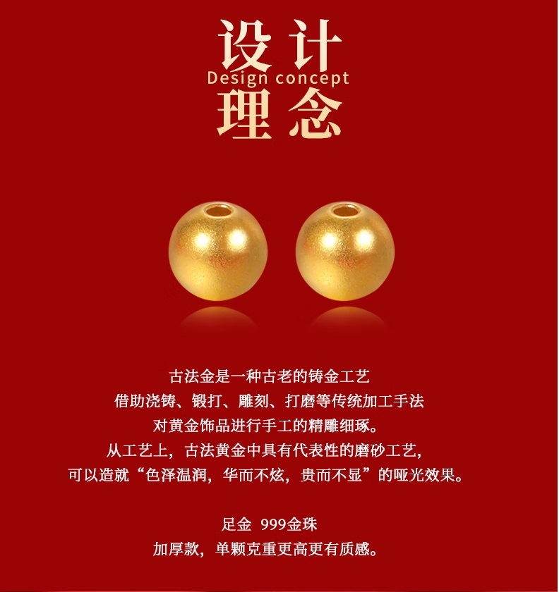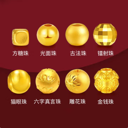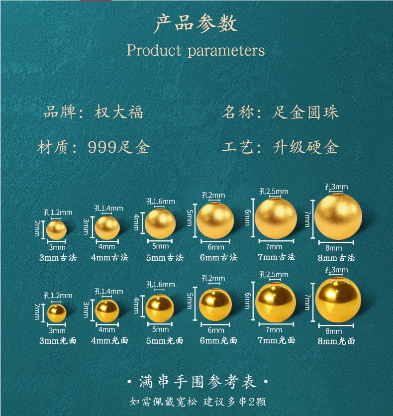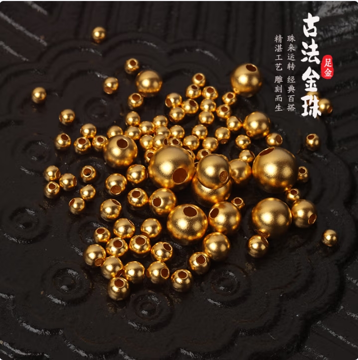 权大福足金999黄金珠子小散珠转运珠手链DIY古法半实心金珠手串配珠圆