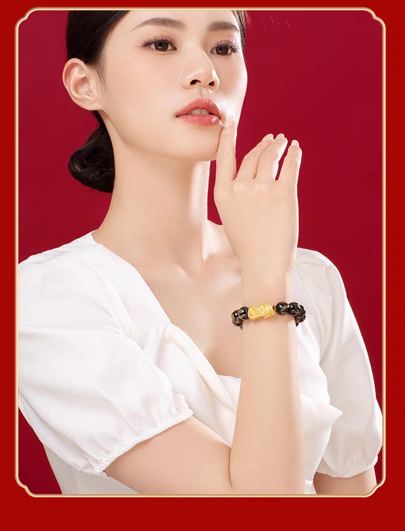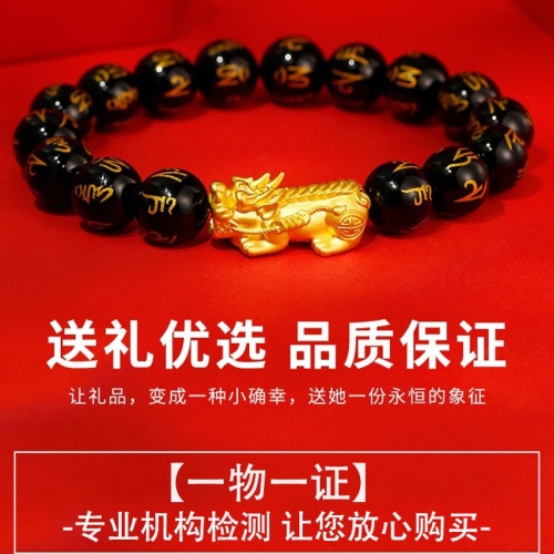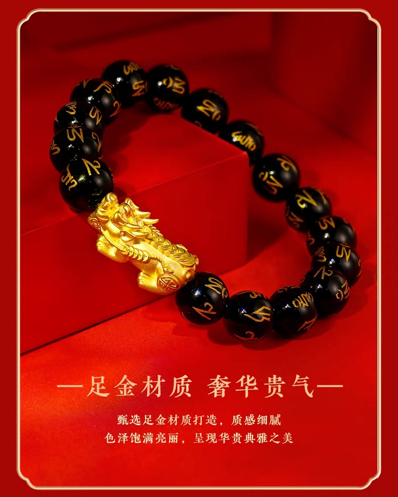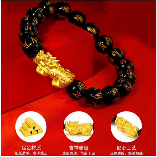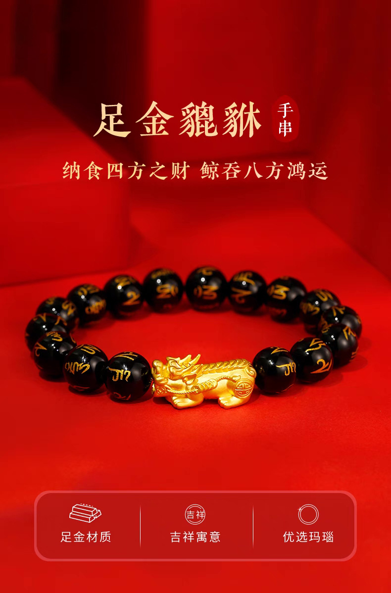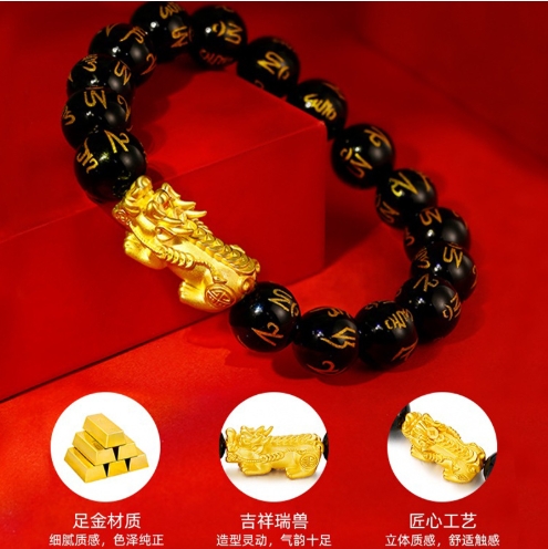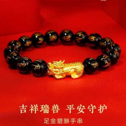 3D硬金999足金 黄金貔貅手链