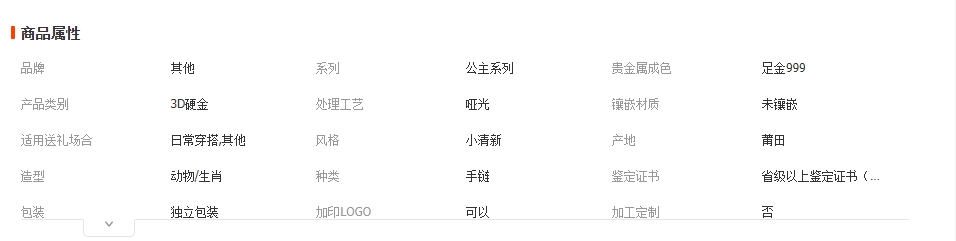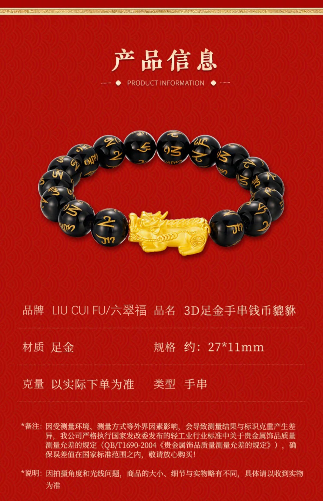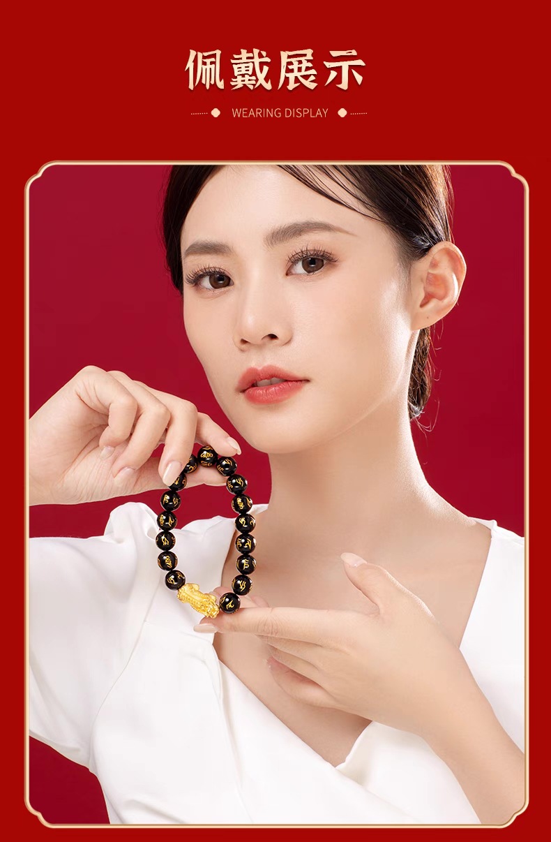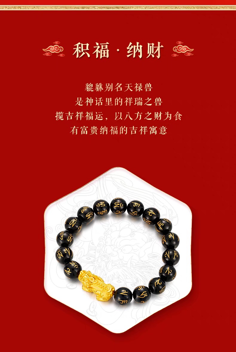 3D硬金999足金 黄金貔貅手链