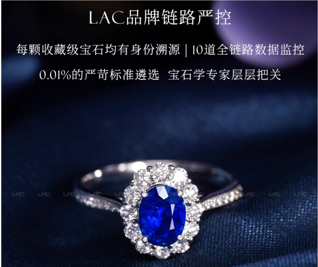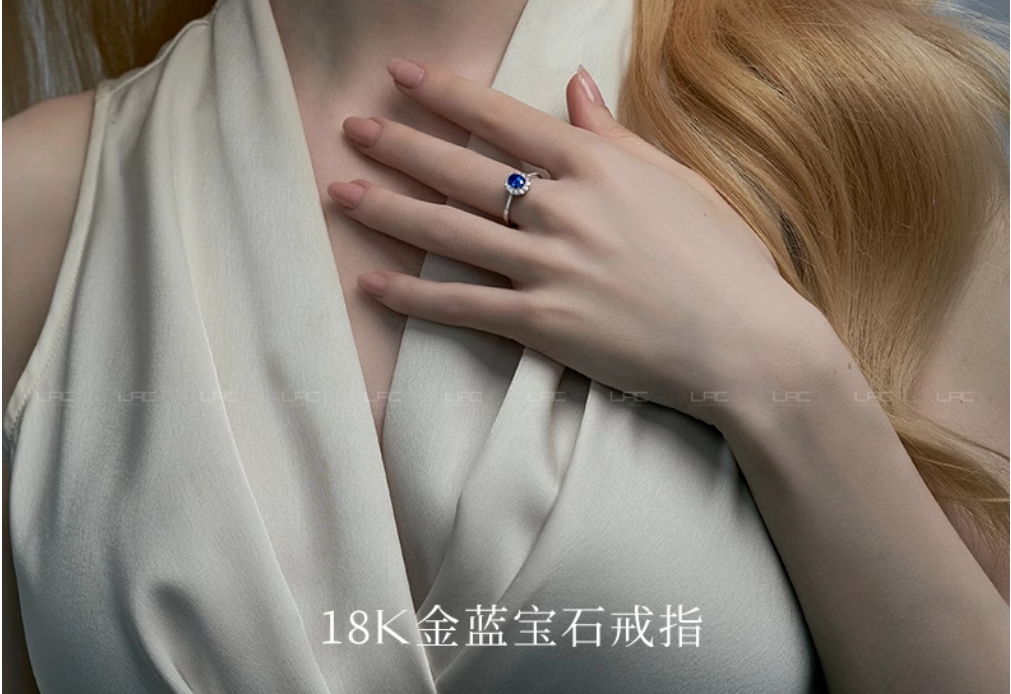 LAC高级珠宝 蓝宝石彩宝戒指18k金镶钻石挚爱经典款手饰